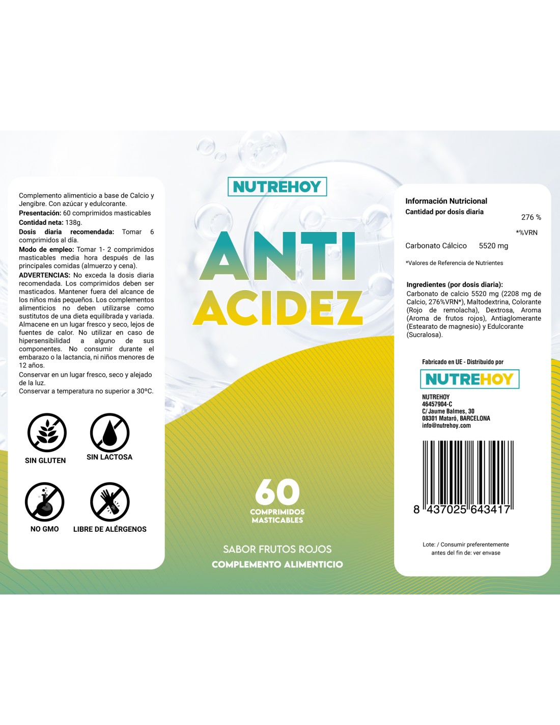Si estás buscando un tratamiento efectivo y de fácil uso para tus problemas de acidez y reflujo gástrico, Anti Acidez de Nutrehoy es la opción perfecta para ti. Proporciona un alivio rápido y duradero mientras fortalece la salud del sistema digestivo. ¡Consíguelo hoy mismo!